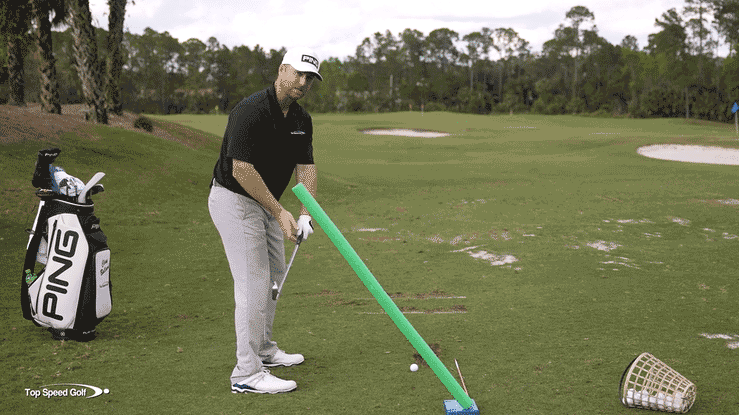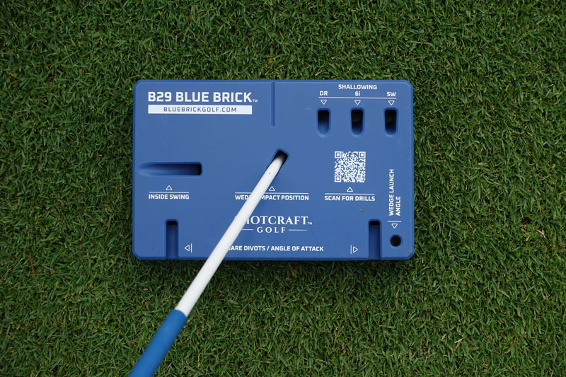 When you place a stick in the shallowing slot, your downswing will smack the stick if you're too steep.